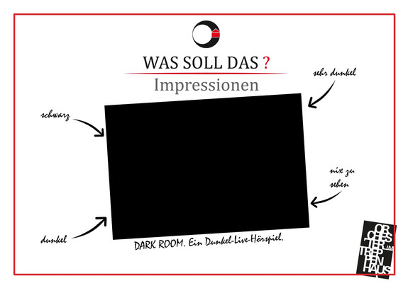 Erzählt wird die tragische Geschichte der Schauspielerin Renate Müller im DARK ROOM – ein Filmriss im Dunkeln. Ein Dunkel-Live-Hörspiel. Aus einer dunklen Zeit. Eine orchestrale Freiheitsberaubung. An einem ungewöhlichen Ort. Mit den Synchronstimmen von Juliette Binoche und Salma Hayek (live gesprochen von Christin Marquitan) bzw. von Jamie Foxx und Jean-Claude van Damme (live gesprochen von Charles Rettinghaus).
